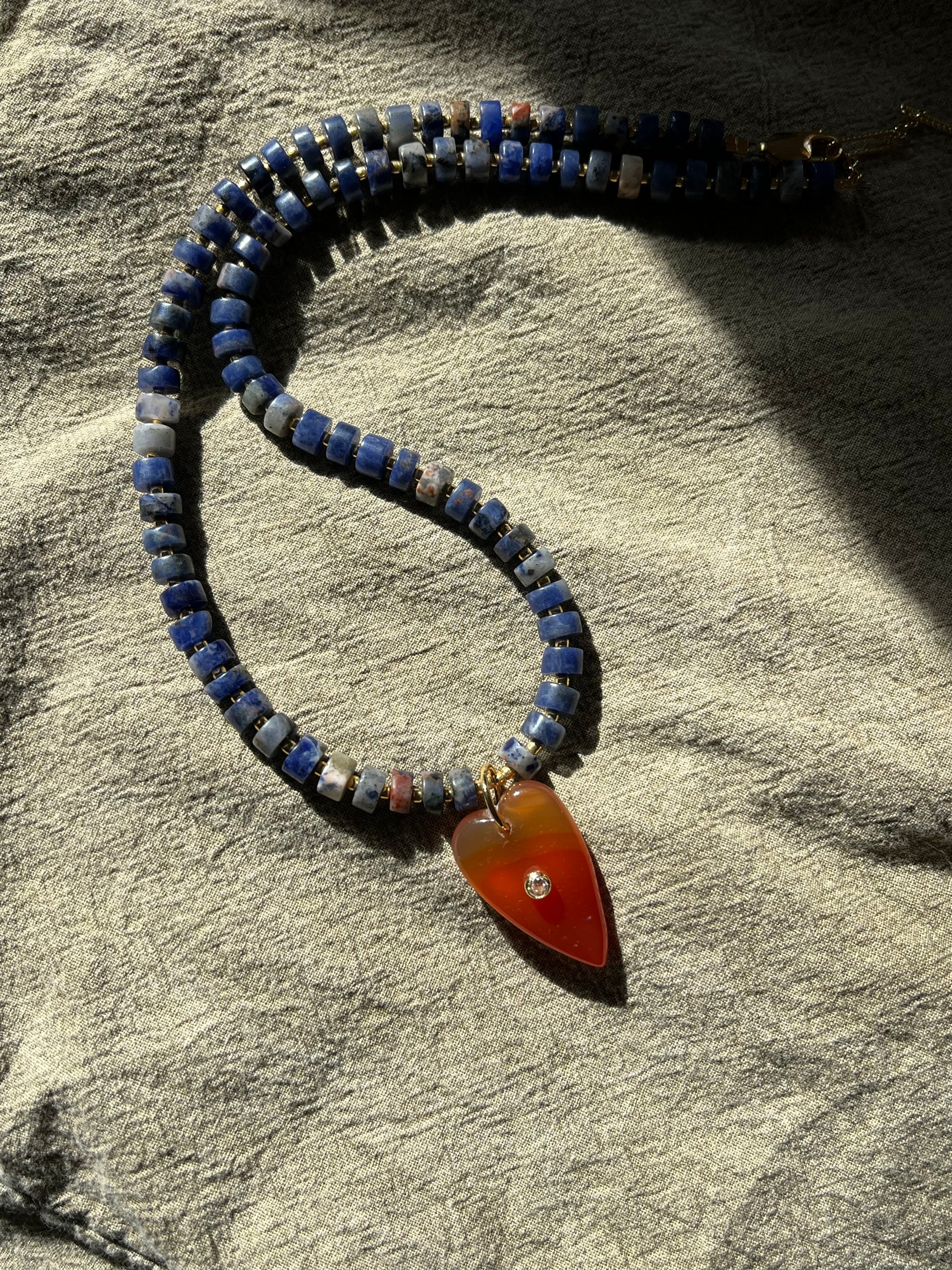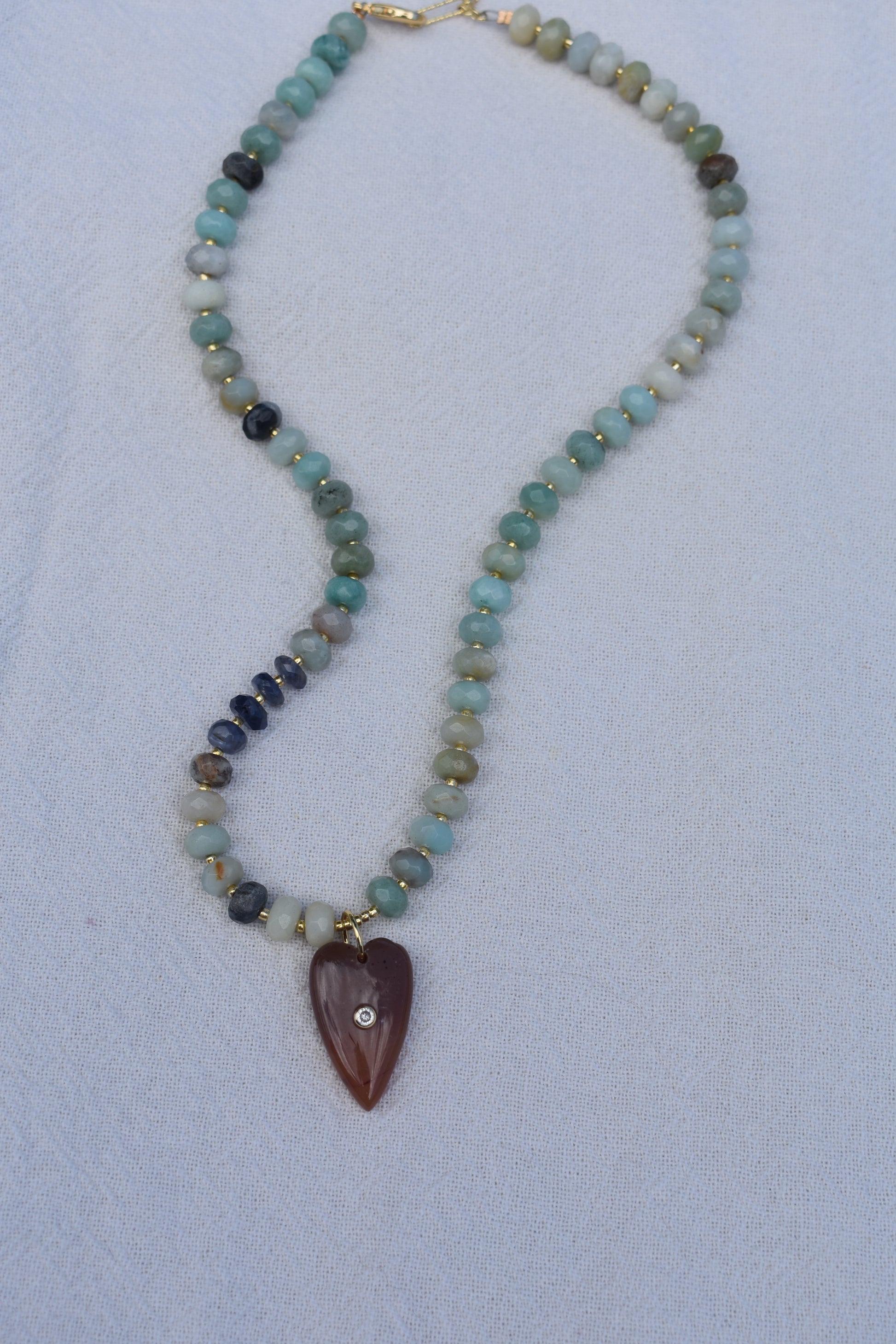 Amazonite or straits beads with a carnelian heart charm ❤️🔥 finished with a 18k gold plated clasp and a 18k goldfilled 2” extension chain.